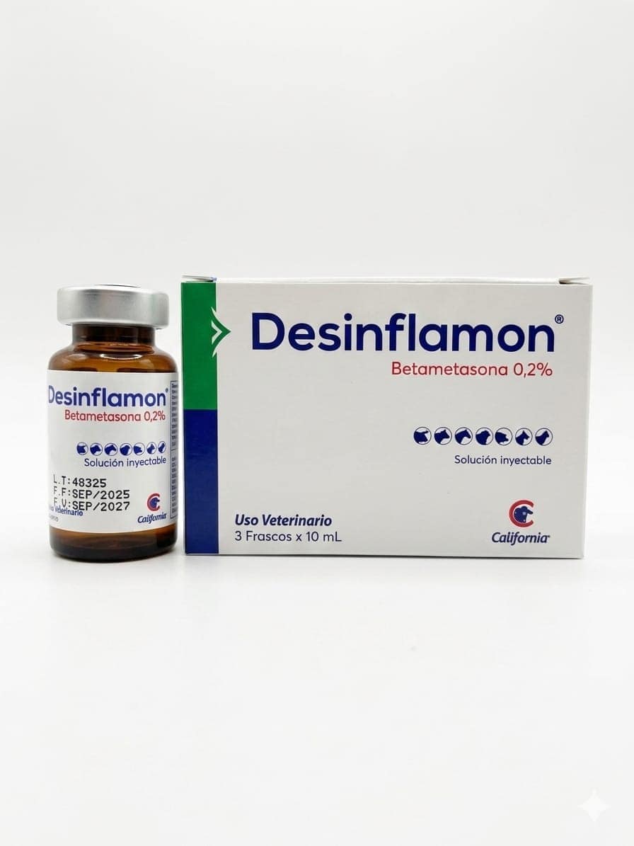 de uso veterinario, indicada como antiinflamatorio y antialérgico en diferentes especies animales. Ayuda a reducir procesos inflamatorios y reacciones alérgicas, contribuyendo al bienestar del animal.